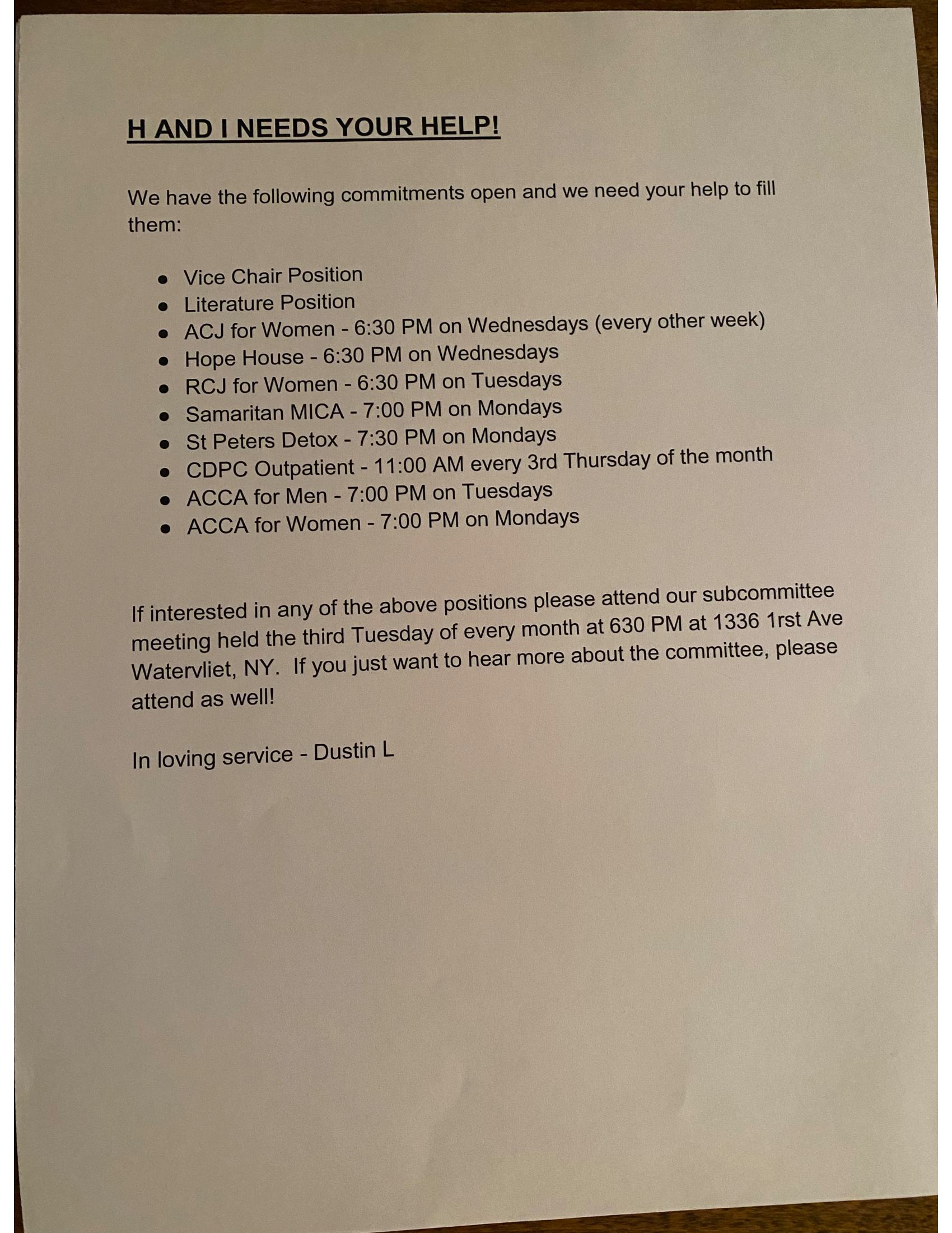 H & I Needs Your Help By Web Servant on August 23, 2025 in Calendar When: August 26, 2025 @ 6:30 pm – January 27, 2026 @ 7:30 pm 2025-08-26T18:30:00-04:00 2026-01-27T19:30:00-05:00 Where: The third Tuesday 1336 1st Ave New York, NY 10021 USA Event Related