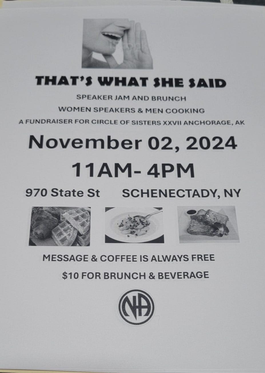 That’s What She Said Speaker Jam By Web Servant on September 16, 2024 in Calendar When: November 2, 2024 @ 11:00 am – 4:00 pm 2024-11-02T11:00:00-04:00 2024-11-02T16:00:00-04:00 Where: 970 State St Schenectady, NY 12307 USA Cost: Free, $10 for brunch Event Related